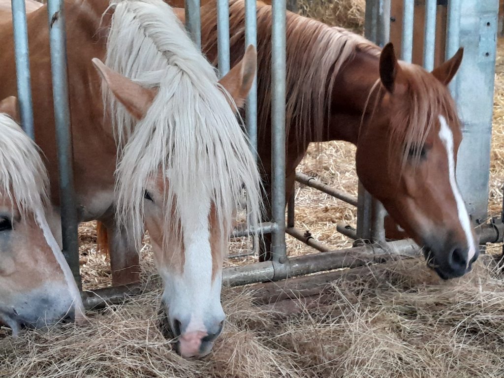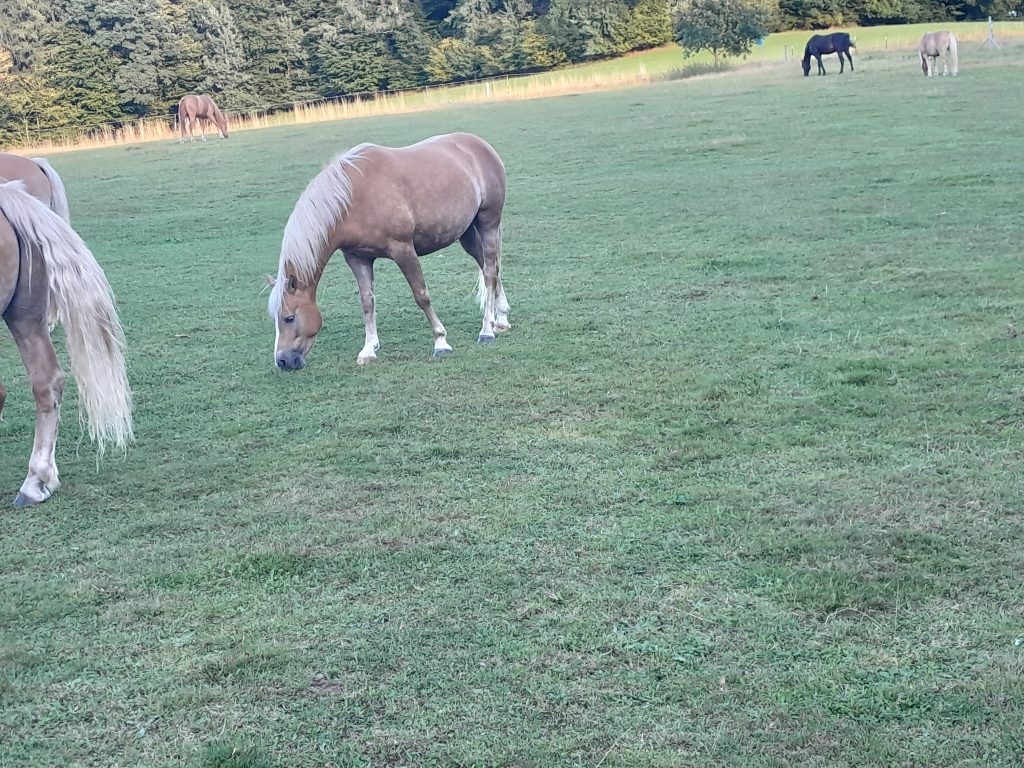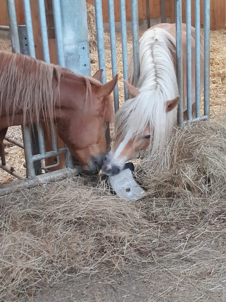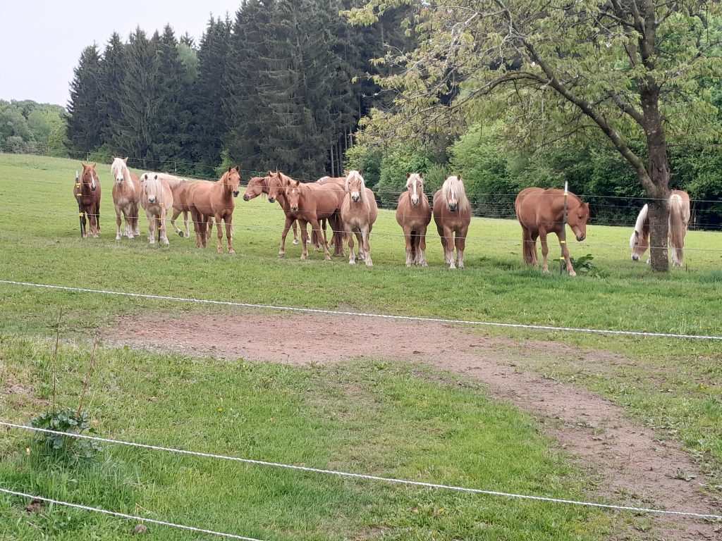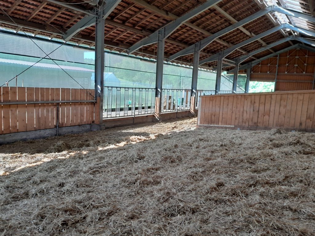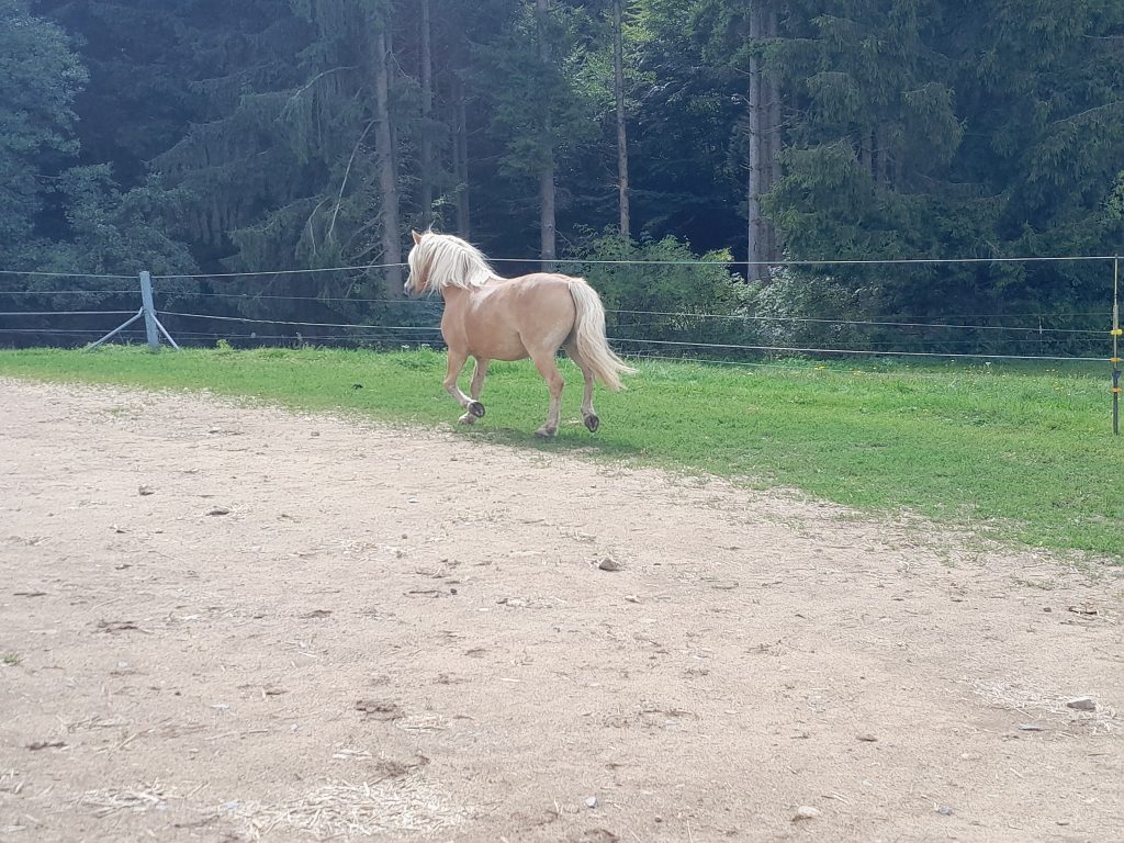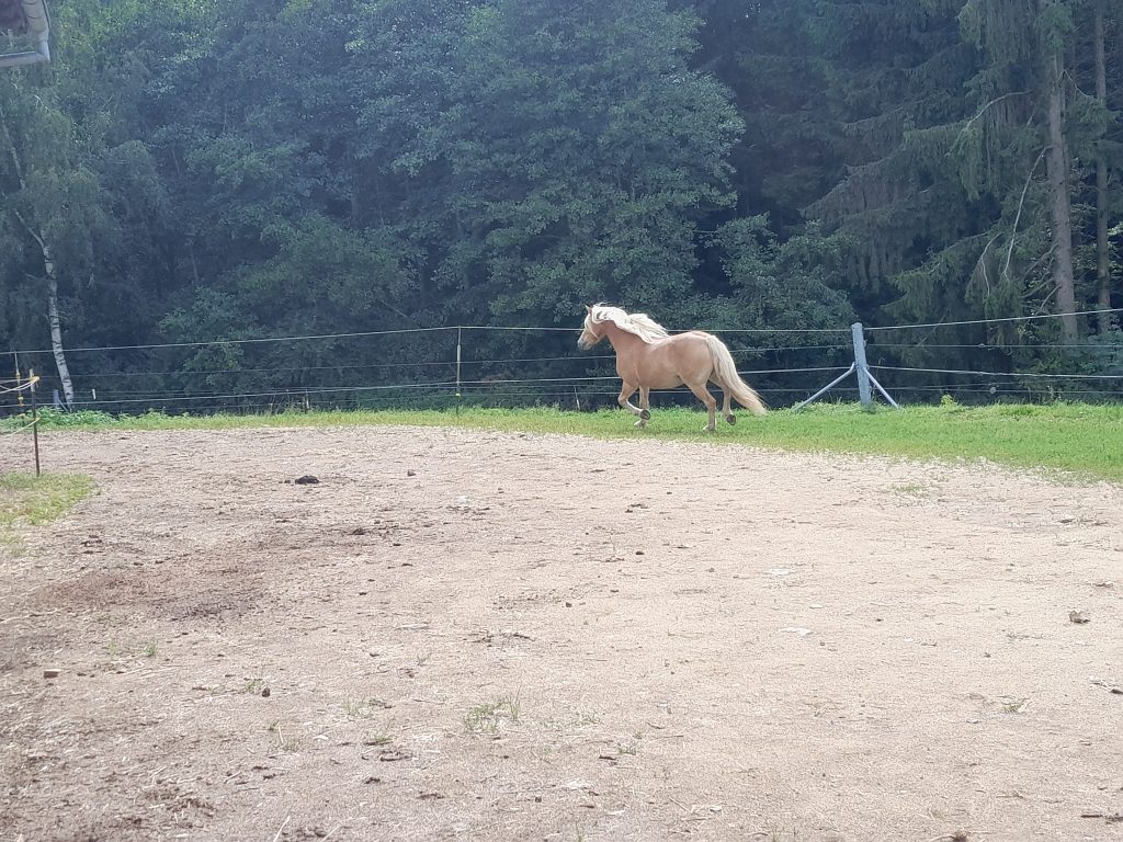 Auf ca. 8ha Weide und einem großen, hellen und luftigen Laufstall mit ca. 400qm wachsen unsere Jungpferde in einer Herde auf.